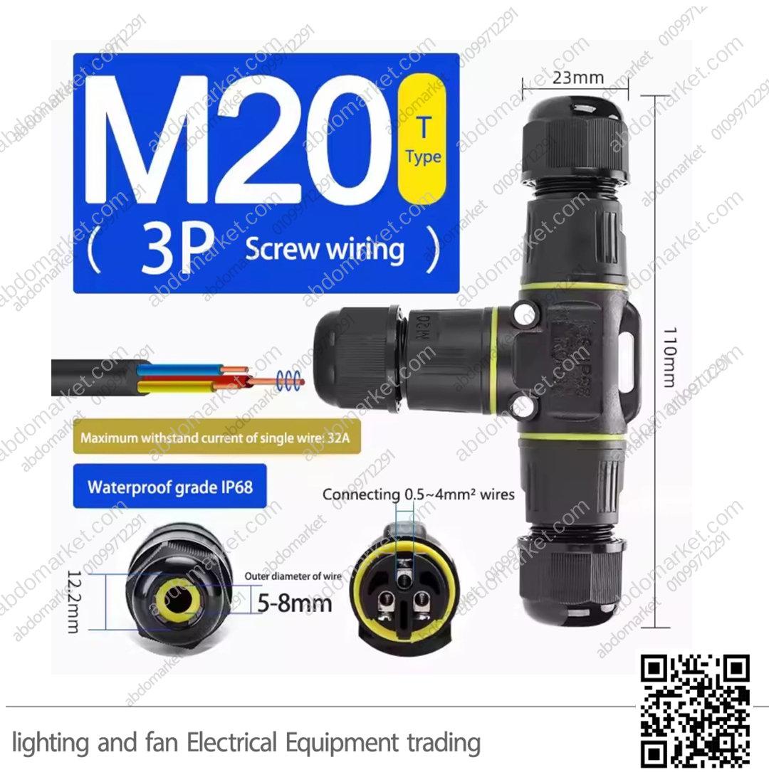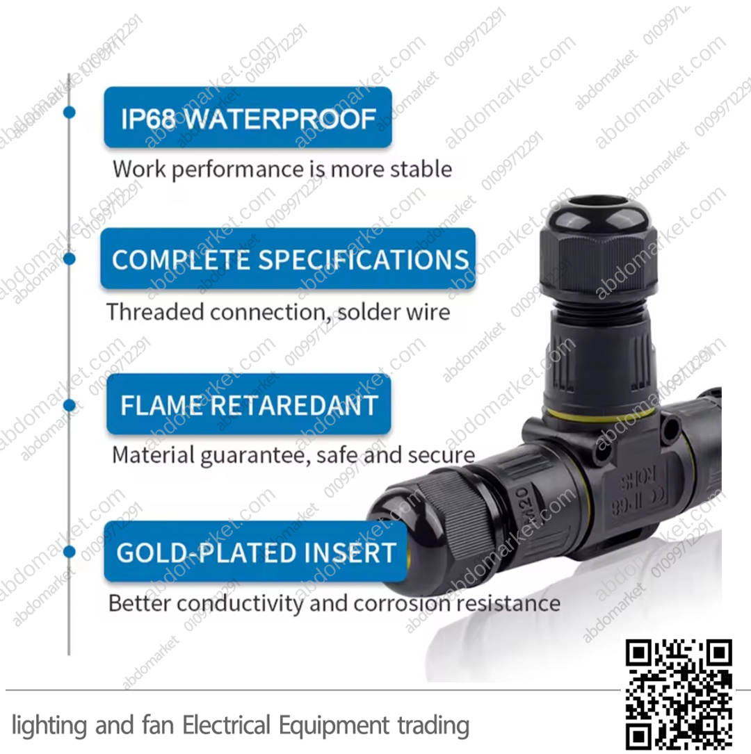 وصلة كابل كونكتور T ثلاثية ip68 لكشافات اوت دور :