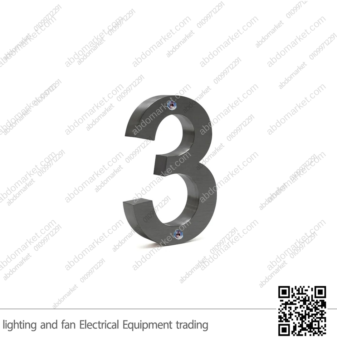 * رقم عمارة 3 المصنوع من المعدن الاسود اللامع هو إضافة فاخرة وعملية لأي عمارة أو فيلا