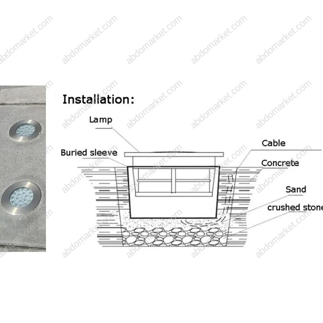 - مصنوع من الالمنيوم بلون الفضي ، و العواكس من الزجاج المقوى عازل للمياه تماما يركب في الارض من خلال علبة بنكون ماسسين