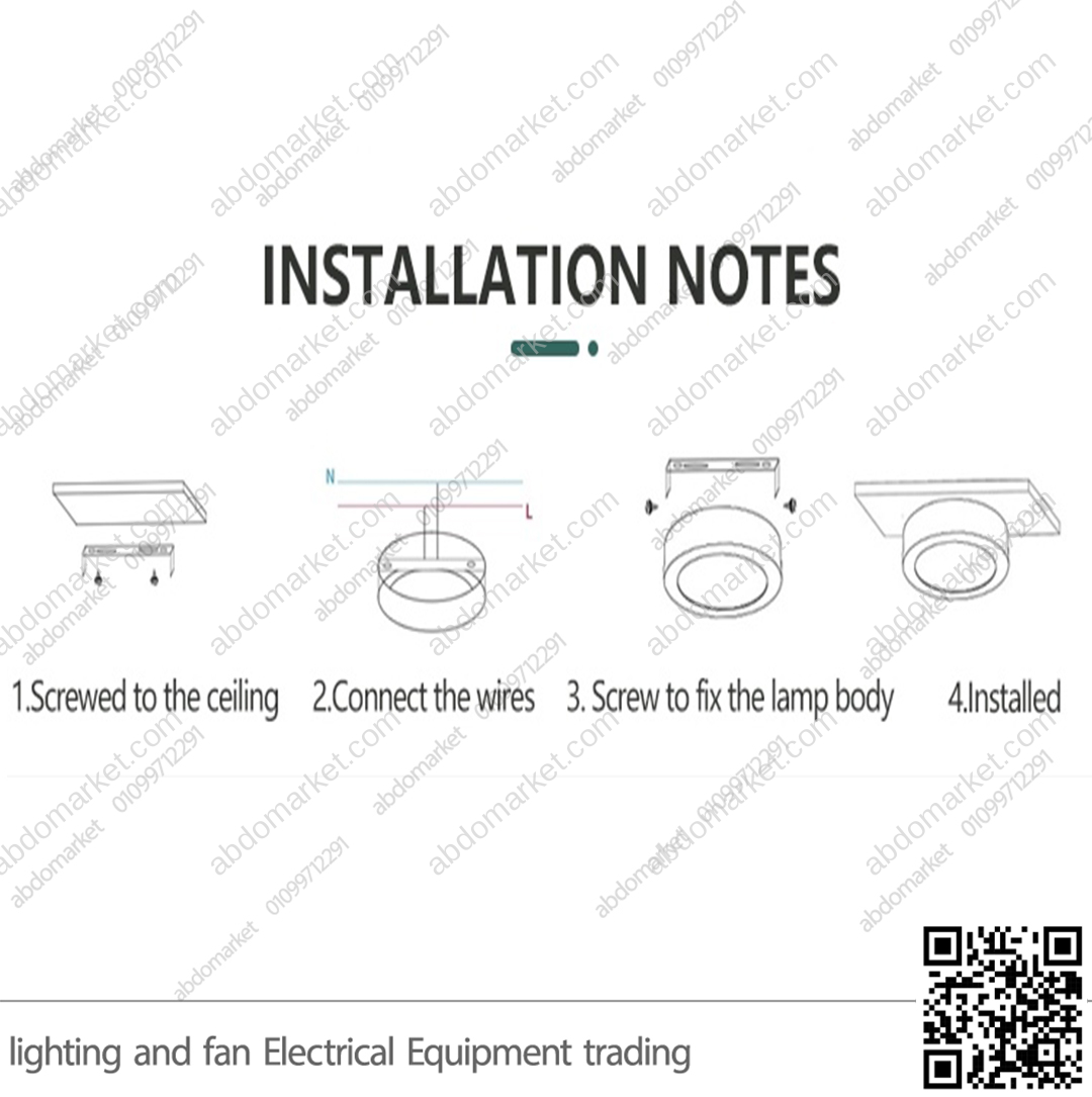 ثم يتم توصيل الأسلاك وبعدها يتم تثبيت جسم السبوت على القاعدة بواسطة المسامير المرفقة مع الكشاف