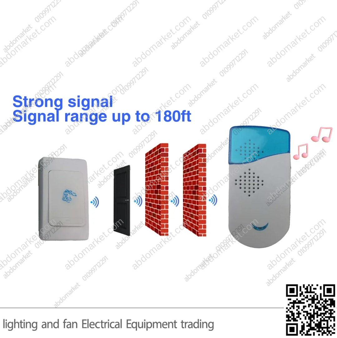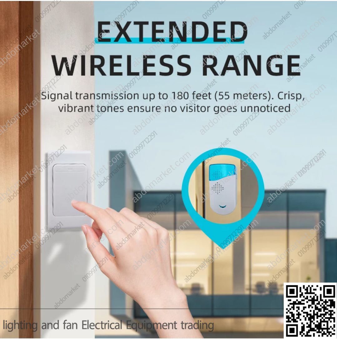 - يتميز هذا الجرس بتقنية إرسال قوية تخترق الجدران والعوائق لضمان وصول الإشارة بوضوح بفضل المدى الطويل الذي يصل إلى 180 قدم ( حوالي 55 متر ) في المناطق المفتوحة