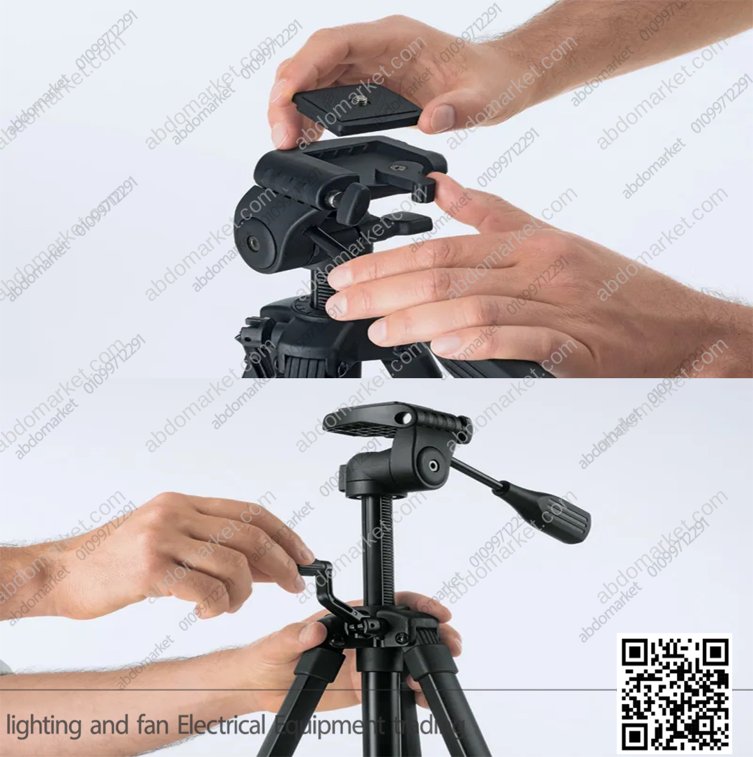* يتميز الحامل بتصميم ثلاثي القوائم متين وخفيف الوزن يمكن تمديد سيقانه بشكل فردي لضمان الاستقرار حتى على الأسطح غير المستوية