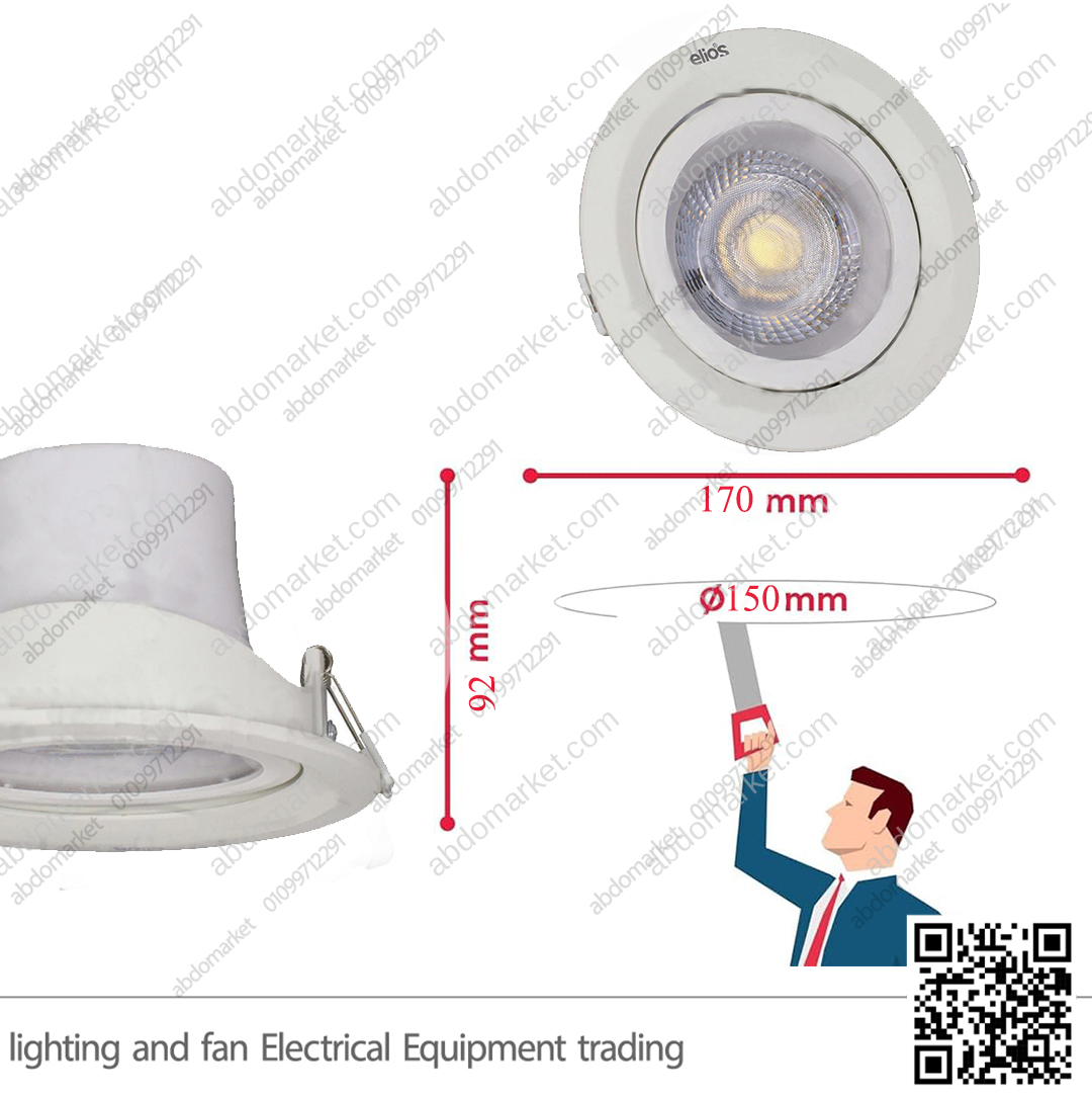يتم تثبيته في فتحة مدورة بمقاس 15 سم عن طريق سوست التثبيت المدمجة مع السبوت ويتم توصيله الى التيار مباشرة دون الحاجة الى ترنس