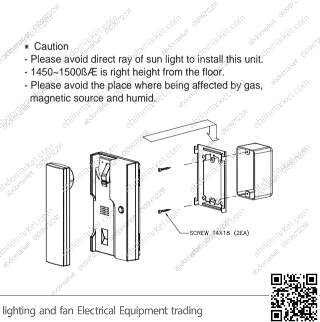 - تأتي السماعة الداخلية مزودة بفيشة كهرباء مدمجة تعمل على التيار 220 فولت حيث يتم تثبيت السماعة لطش وتثبيت الوحدة الخارجية داخل الحائط