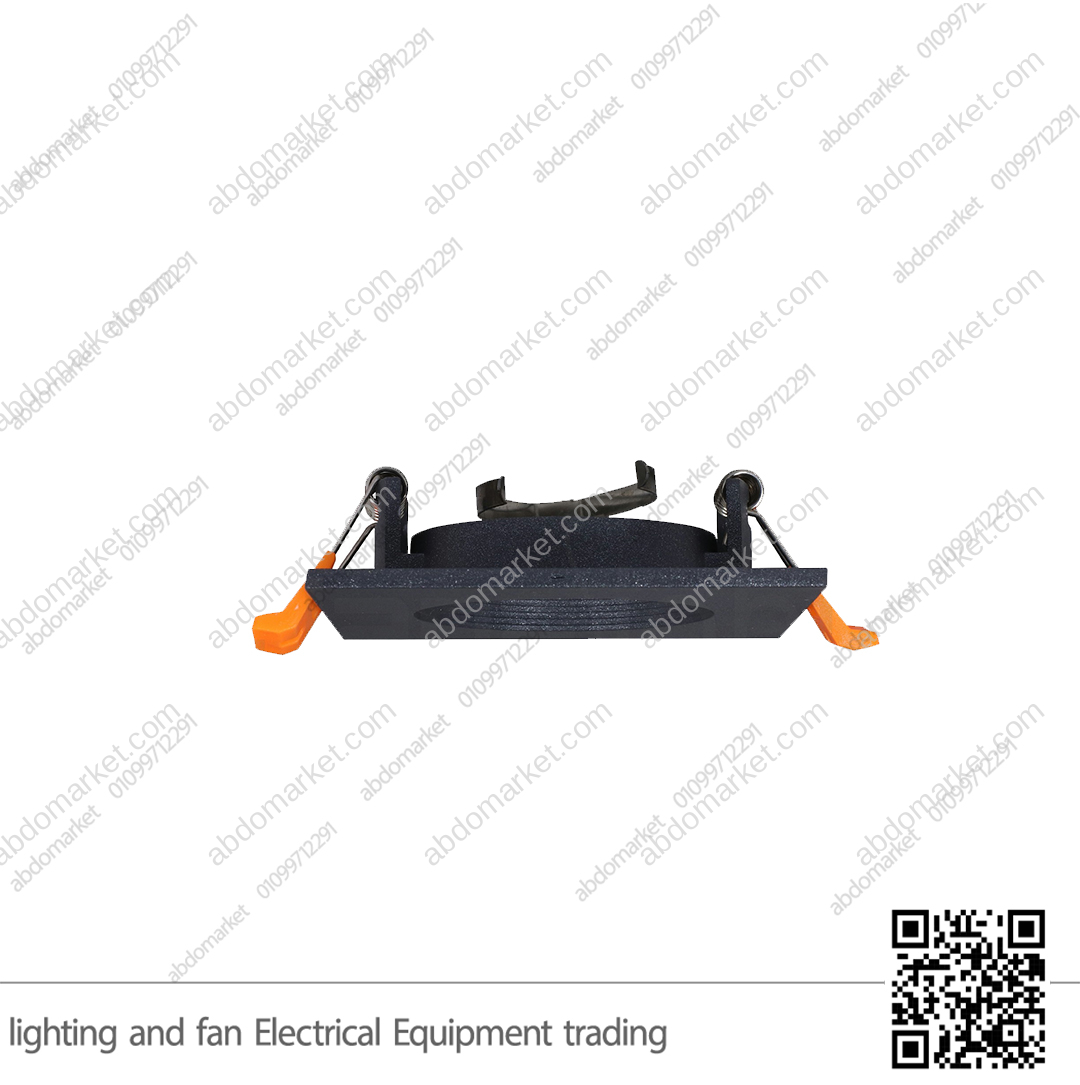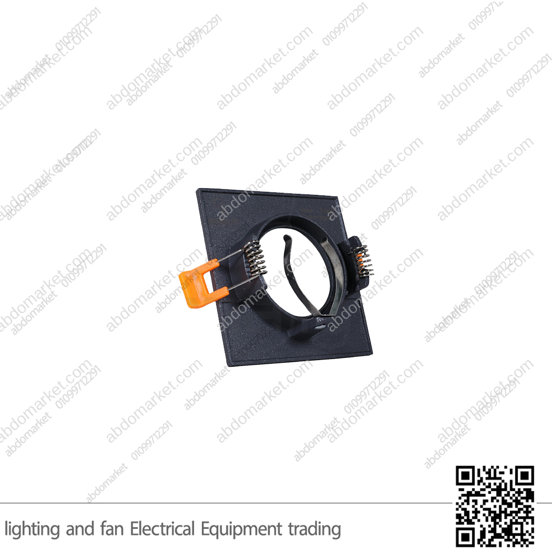 * فريم سبوت لايت فارغ مربع اسود مصنوع من الالمنيوم وبمقاس فتحة 7.5 سم ومقاس وش 8.5 سم يركب على فتحة 7 سم يتم تثبيه في اسقف الجبس بورد في فتحة بمقاس 7 سم عن طريق سوستة التثبيت