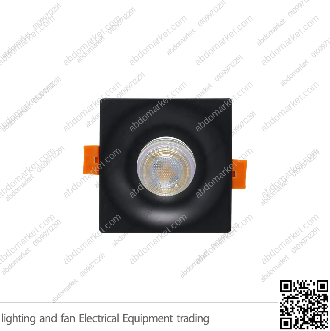 حيث يتم تثبيت اللمبة الكاسة على فريم سبوت لايت فارغ مربع اسود من خلال سوست خاصة لتثبيت اللمبة