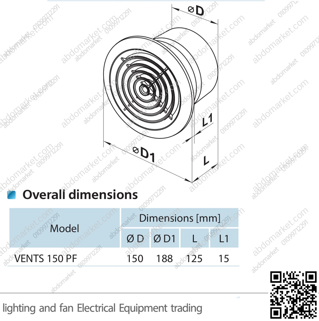 * شفاط زجاج مدور بشبكة 6 بوصة وش مدور قطر 19 سم من شركة VENTS 150 PF هو عبارة عن حل منخفض الضوضاء وموفر للطاقة مصمم لتهوية الحمامات والمطابخ وغرف المرافق
