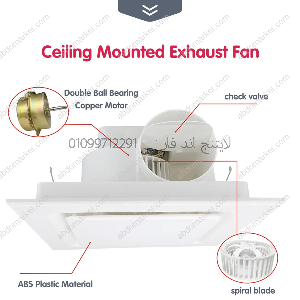 - شفاط سقف مربع وش 25 سم ماركة walsan بمحرك ملف نحاس بقوة 50 واط ومروحة عالية الاداء .