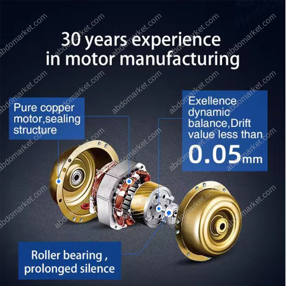 - المحرك مصنوع من النحاس الخالص لضمان عمر افتراضي طويل وأداء مستمر .