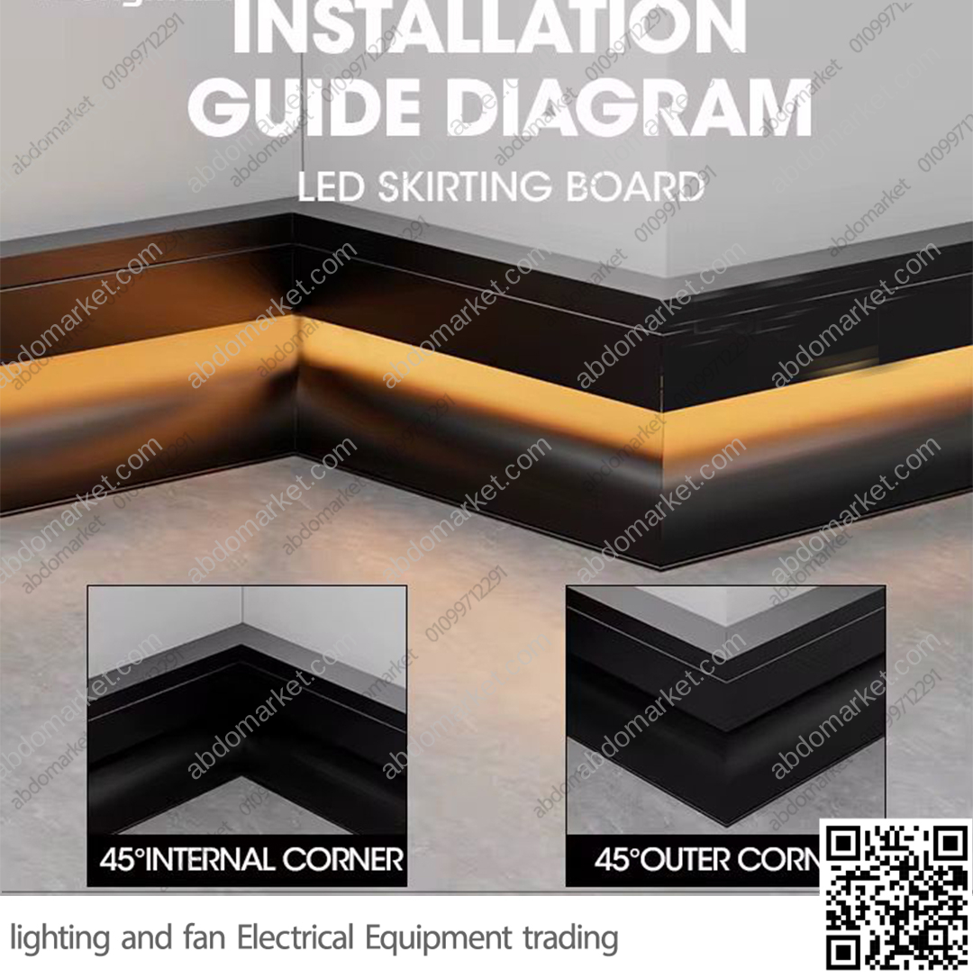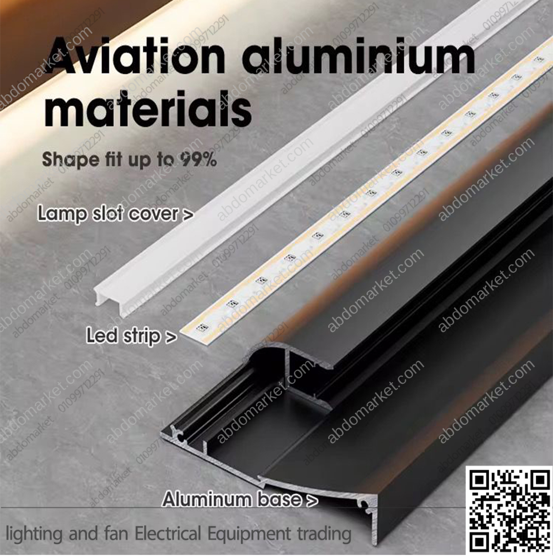 - قطاع اضاءة رفيع معدني و مصنع من الألمنيوم عالي الكثافة ويركب به شريط ليد مخصص له.
