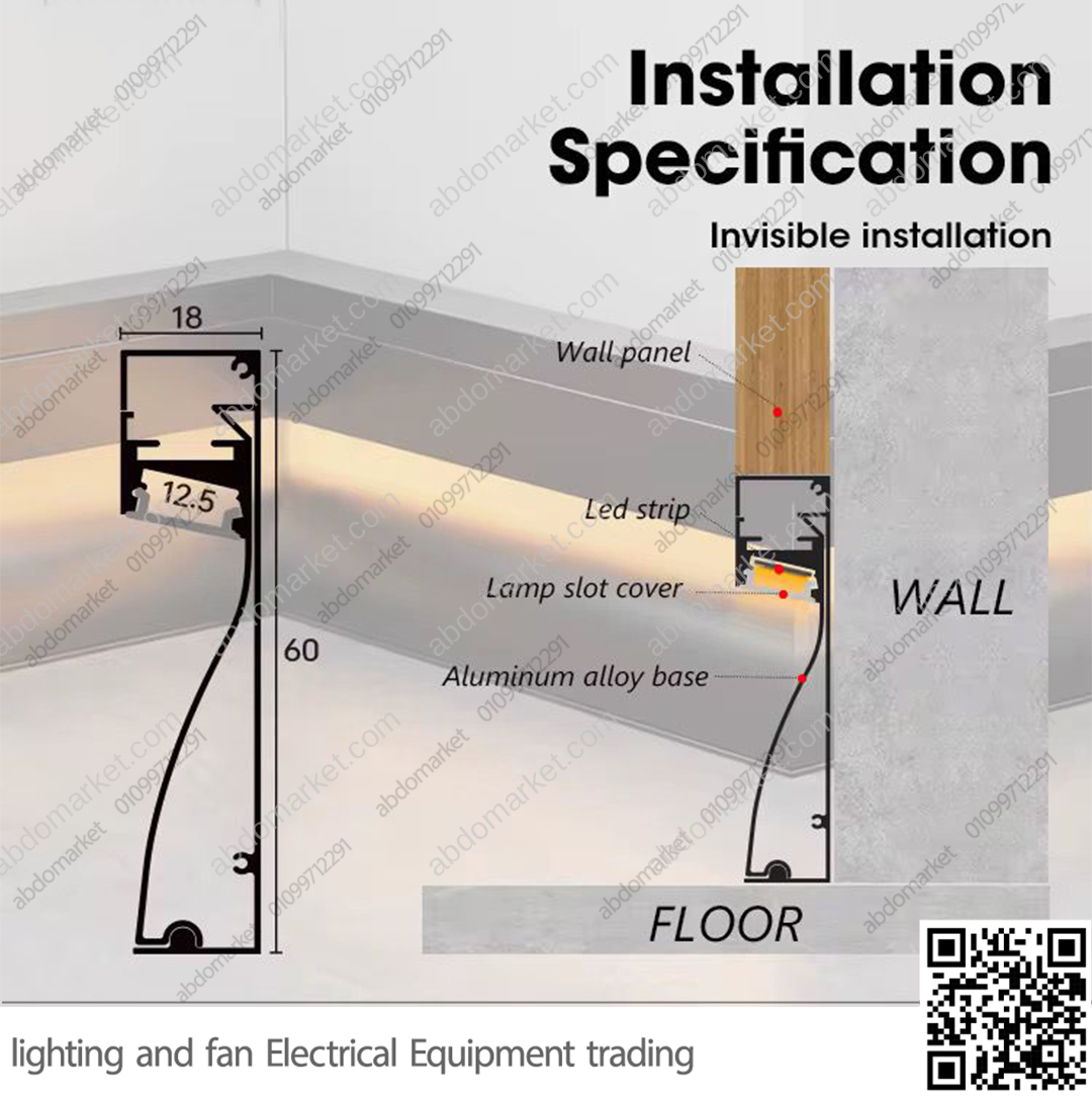 - قطاع اضاءة بروفايل معدني بديل السيراميك يركب لطش او داخل الحائط.