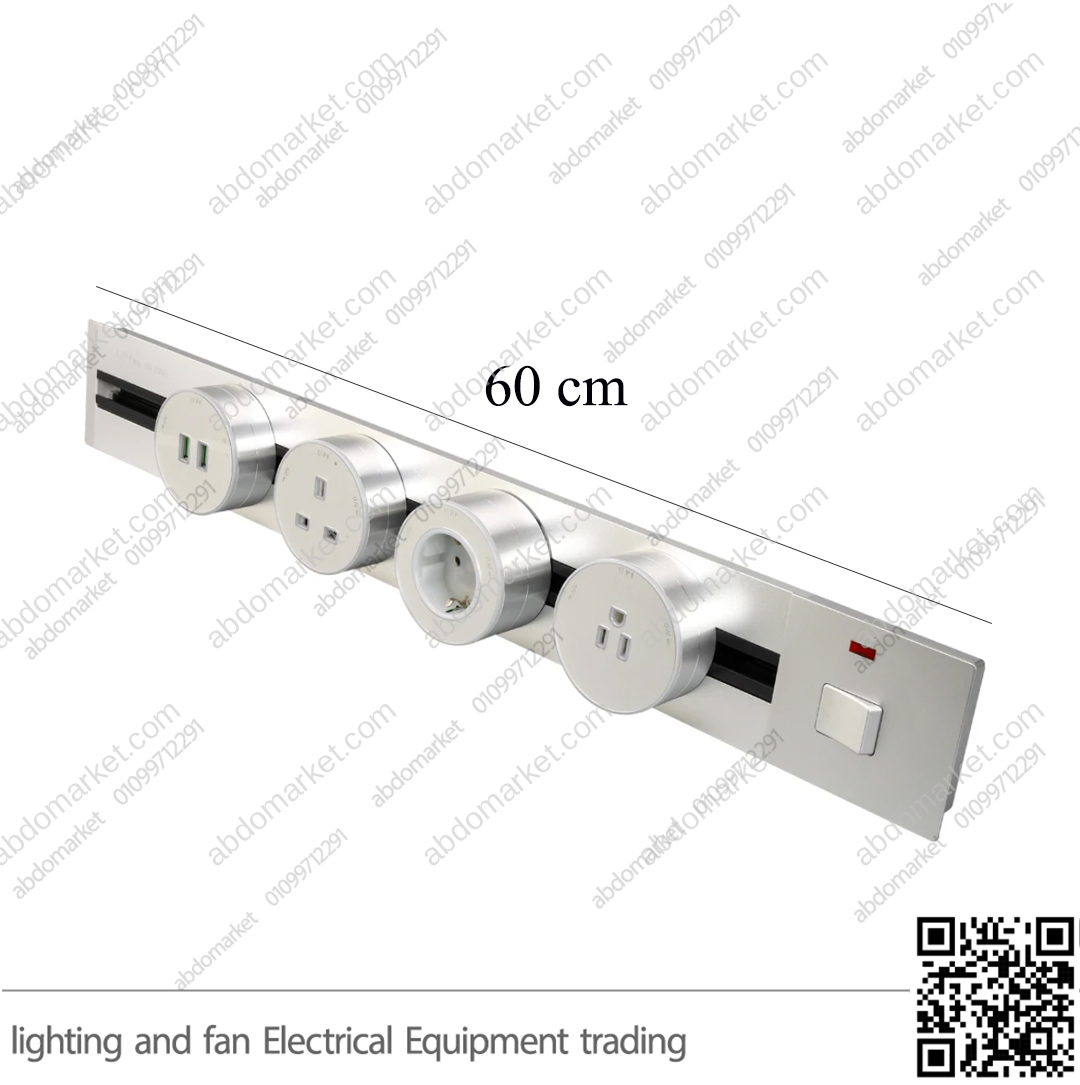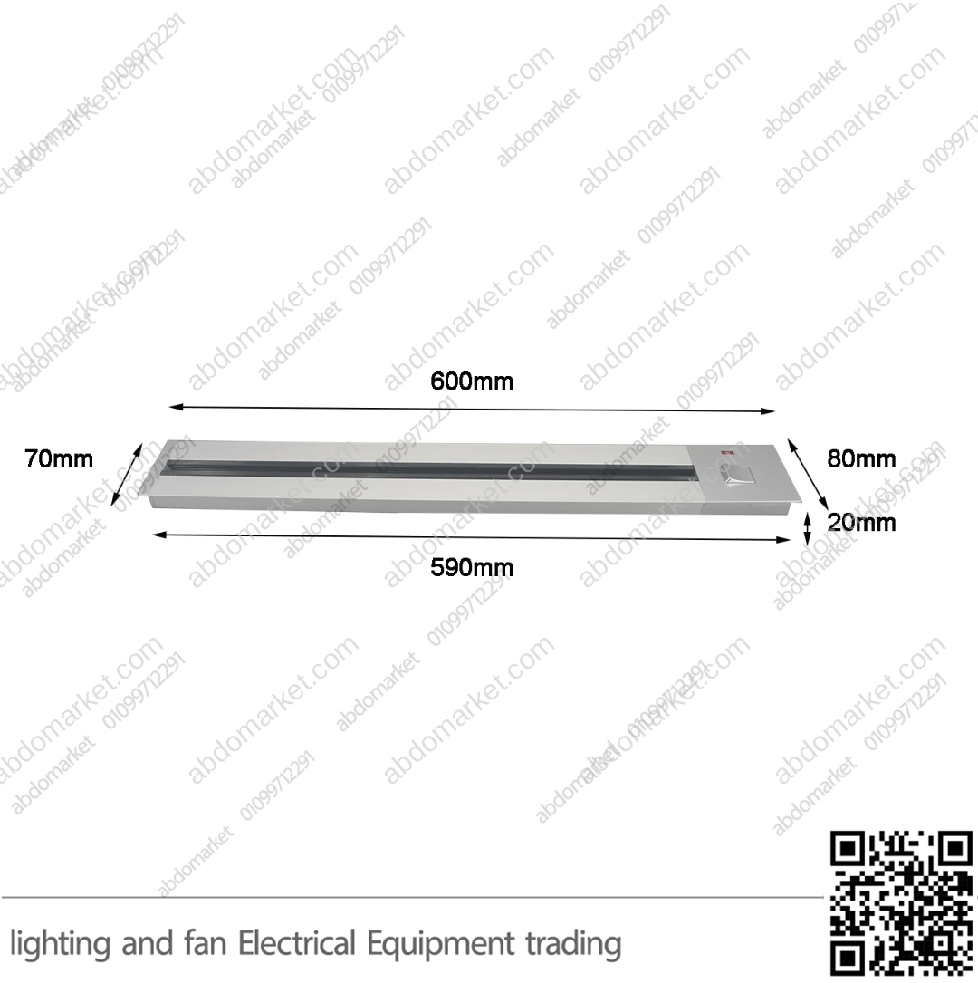 * مسطرة كهرباء 60 سم فضي داخل المسار نفسه يتطلب فتحة قطع بطول 59 سم وعرض 7 سم مع عمق 2 سم للتركيب المدمج