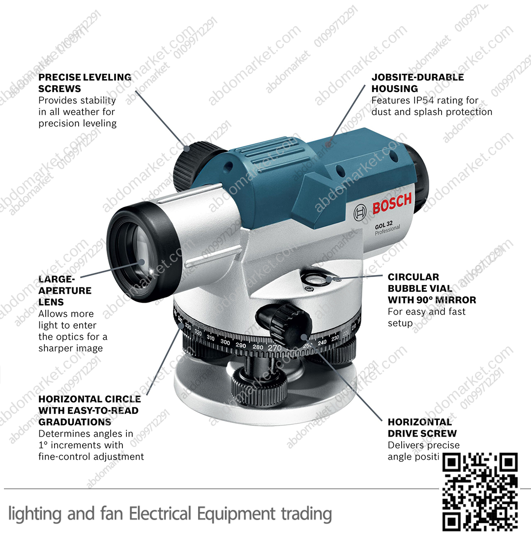 - جهاز التسوية البصري من بوش GOL 32 D هو أداة متينة وعالية الدقة مصممة للاستخدام في المواقع الخارجية